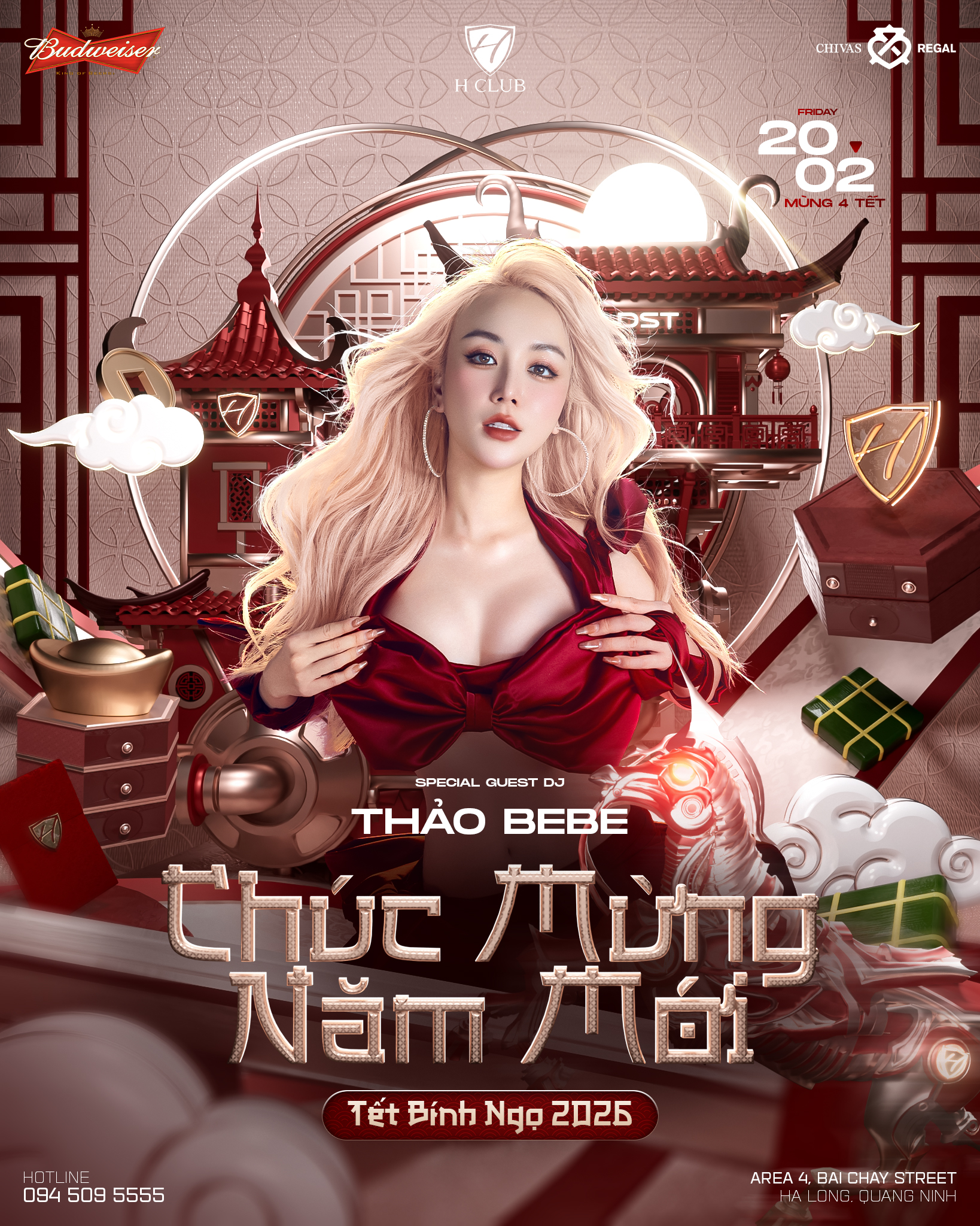 👉 Book bàn sớm để giữ vị trí đẹp và tận hưởng đêm Tết nóng bỏng nhất mùa xuân này cùng DJ THẢO BEBE tại H CLUB 🔥🧧